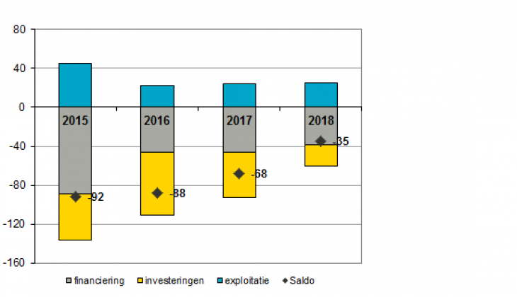 Grafiek I: Financieringsbehoefte 2015-2018 (bedragen x € miljoen) (- zijn uitgaven)